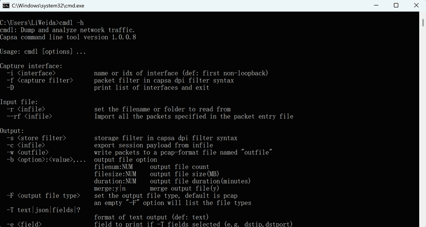 命令行功能:可通过命令进行实时抓包分析和数据包的回放分析