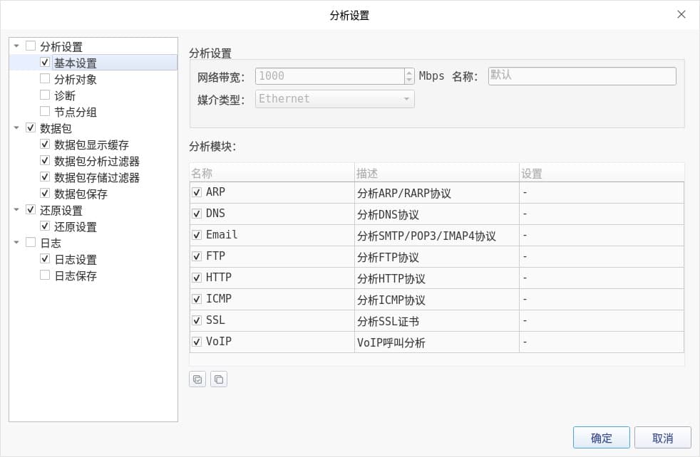 分析设置由多个不同的分析模块组成,并且不同的分析设置,其针对的分析重点有所不同,在分析设置常规设置中,提供分析设置的模块设置,您可以自定义设置分析设置加载的分析模块,如下图4: