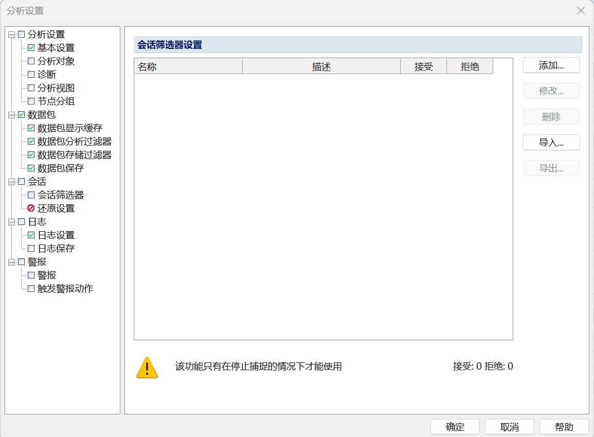 数据包分析过滤器、存储过滤器将在“数据包过滤器介绍”的文章中单独介绍,此处不再解释。